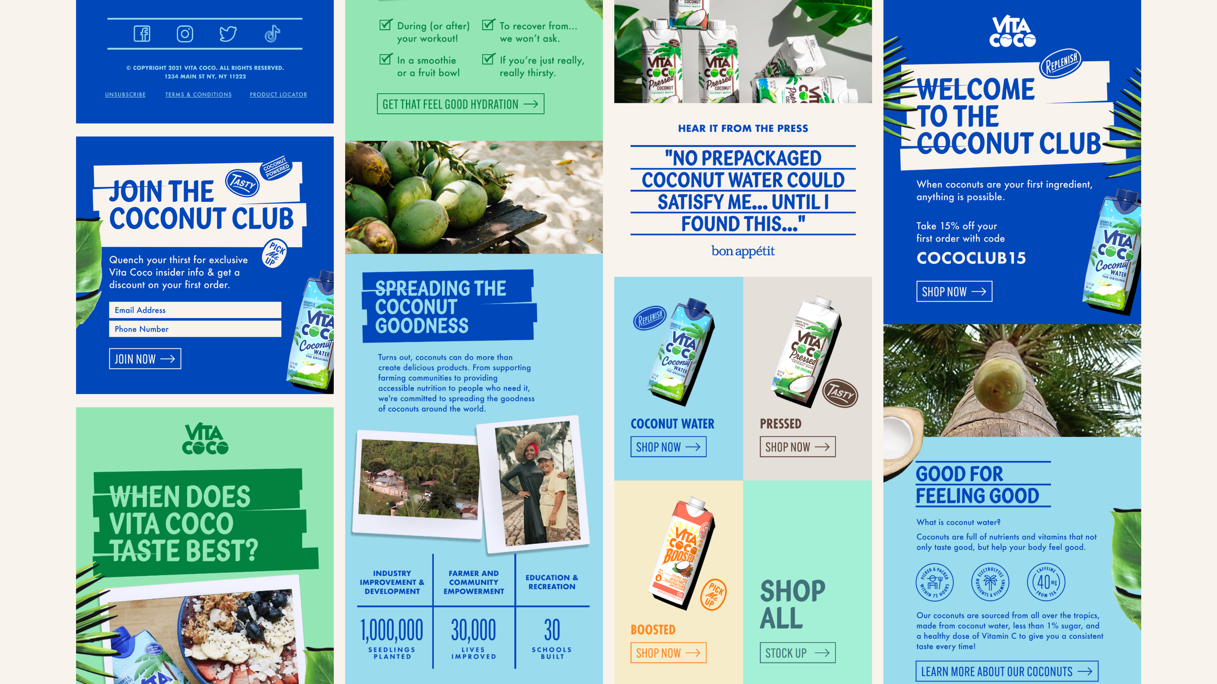 CRM email flow design for Vita Coco's ecommerce brand launch as Lead Designer for Lunar Solar Group.